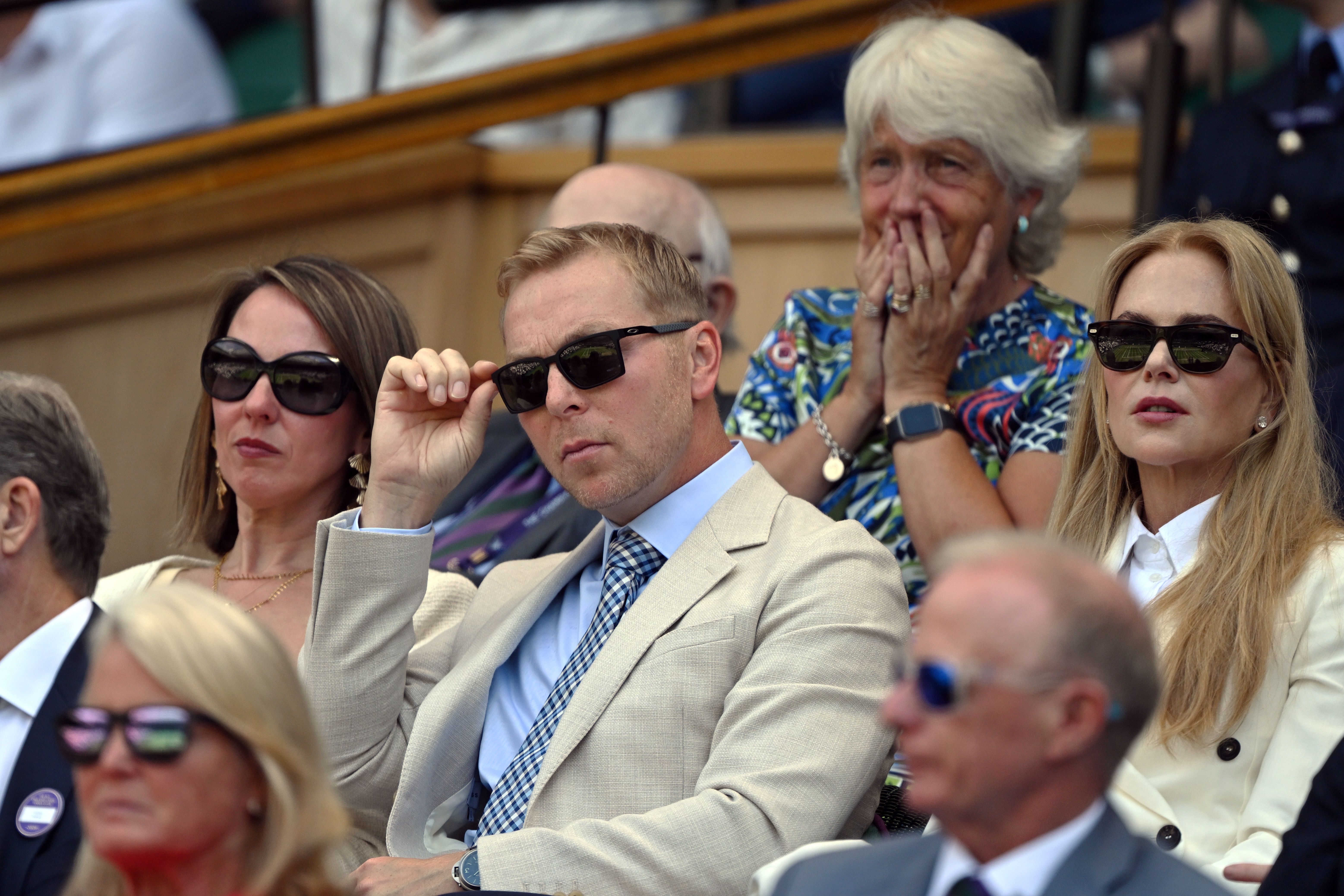Chris Hoy kijkt naar de finale van Wimbledon, op de achtergrond is ook actrice Nicole Kidman te zien.