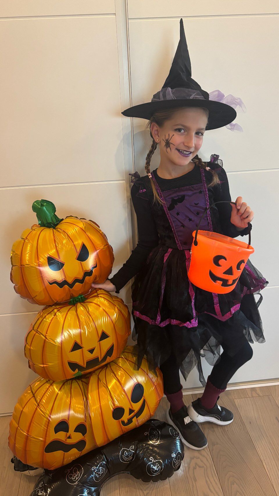 Jesslyn, de 8-jarige dochter van Estavana Polman en Rafael van der Vaart, verscheen vrijdagochtend op school in een oogverblindende heksenoutfit voor het Halloween-feest én stal direct de show. Met haar glimlach, glitters en pompoenemmer kon ze zó uitgeroepen worden tot beste verklede leerling van de dag.