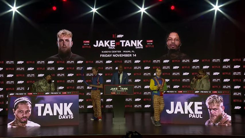 Jake Paul haalt ineens twee clowns op het podium tijdens de persconferentie met Gervonta Davis. ©YouTube