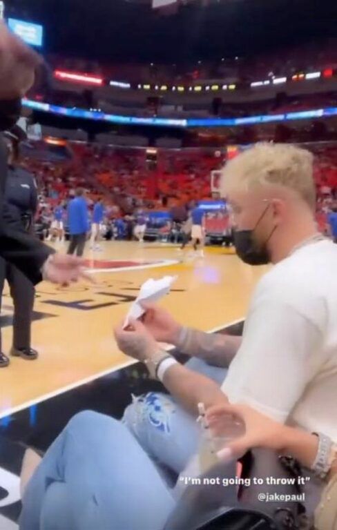 Jake Paul heeft na zijn gewonnen gevecht tegen Tyron Woodley een NBA-match bijgewoond. Zoals het de badboy van YouTube betaamt heeft hij zich weer lopen misdragen. Hij zat naast de vloer en vouwde vliegtuigjes van een statistiekenbriefje.