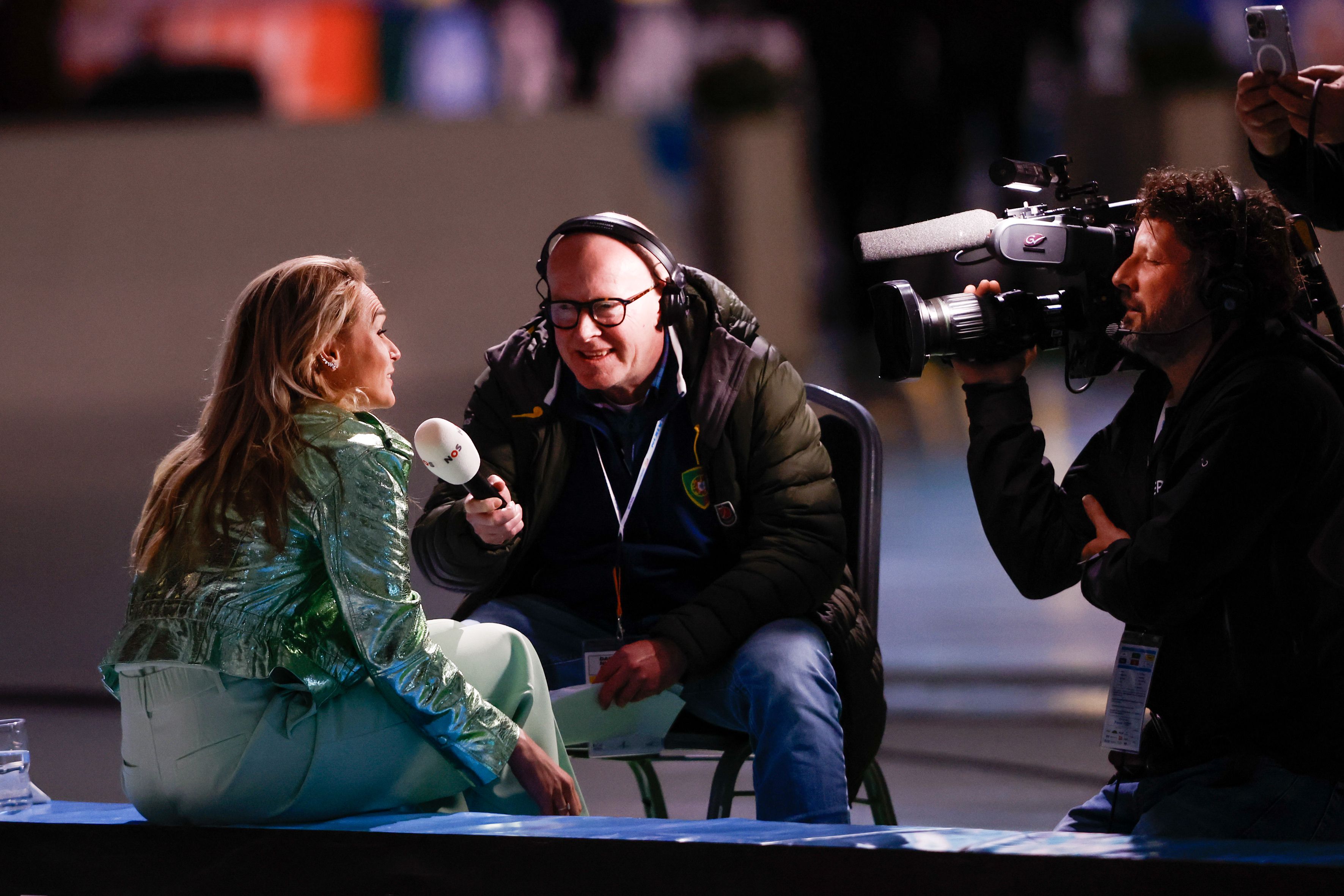 Bert Maalderink in gesprek met Irene Schouten. © Pro Shots