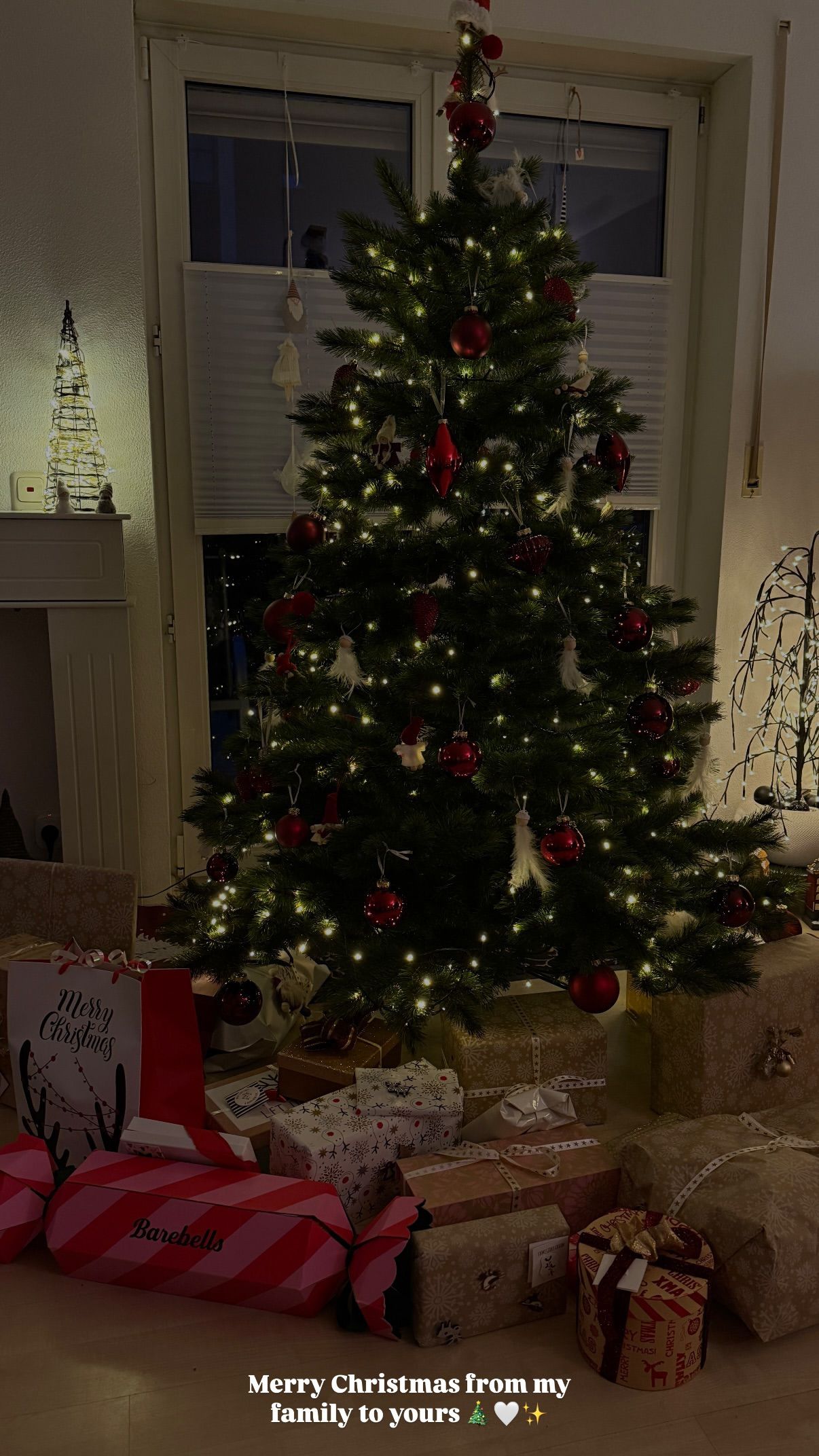 Na het sporten was het tijd voor ontspanning. De Duitse sprintster deelde een foto van de kerstboom bij haar thuis. Daarbij plaatste ze de tekst: 'Een fijne kerst voor iedereen, van mijn familie naar die van jou'.