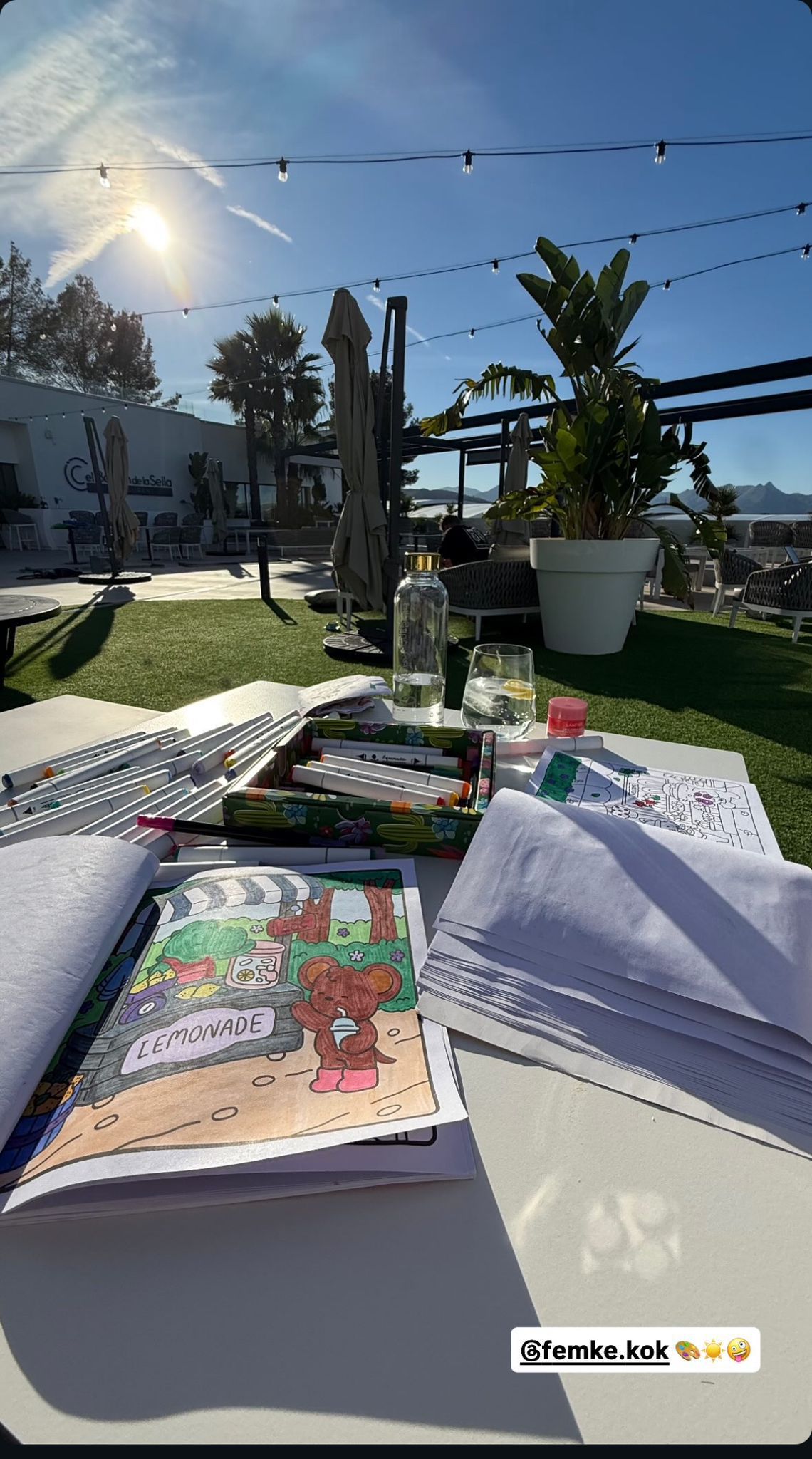 De 24-jarige sprintster deelt op haar Instagram-verhaal een foto waarin twee ingekleurde kleurplaten te zien zijn. Bij de foto tagt Fledderus haar teamgenoot Kok met een emoji van een schilderspalet. De twee lijken naast sportief, dus ook nog eens artistiek onderlegd.