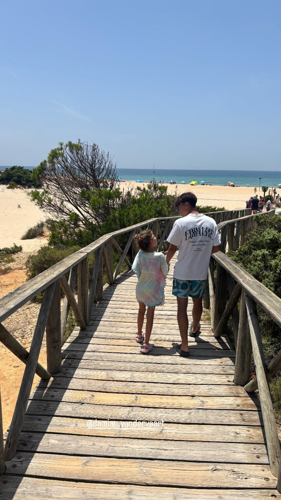 Donderdagmiddag plaatste Polman een vertederende foto op haar Instagram Story van Damián met zijn stiefzusje, die komende week haar achtjarige verjaardag viert. Te zien is hoe de voetballer van Ajax onder 19 hand-in-hand met Jesslynn naar het zonovergoten strand loopt. Van der Vaart junior deelde het beeld vervolgens ook zelf in zijn verhaal.