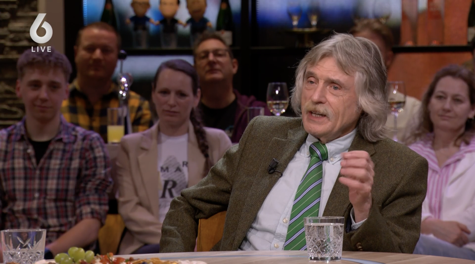 "Is dat geen optie?", vroeg de presentator, terwijl hij de heren aan tafel aan keek. "Mensen zijn aan ons gewend en je doet ze geen plezier als je hier van die ouwe wijven neerzet", was Derksen duidelijk.