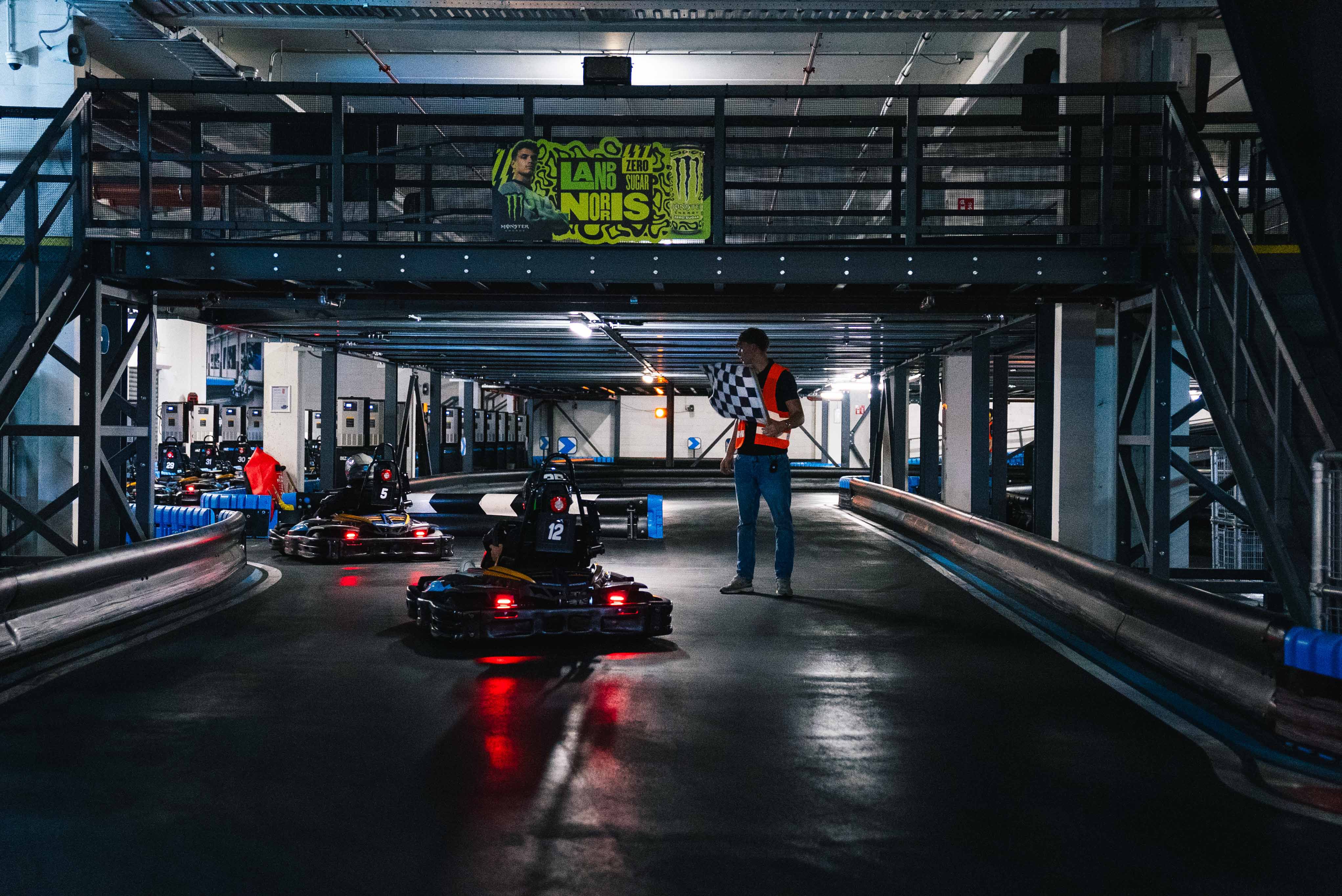 Raceliefhebbers genoeg in Nederland. Dat blijkt ook deze druiligere donderdagochtend, waarop storm Benjamin zich voorzichtig laat zien. Een klein ventje in een Max Verstappen-jack loopt met zijn vijfkoppige gezin naar binnen, waarschijnlijk nog niet wetend dat zij zelf snel als een storm zullen razen door de hal van TeamSport E-Karting.