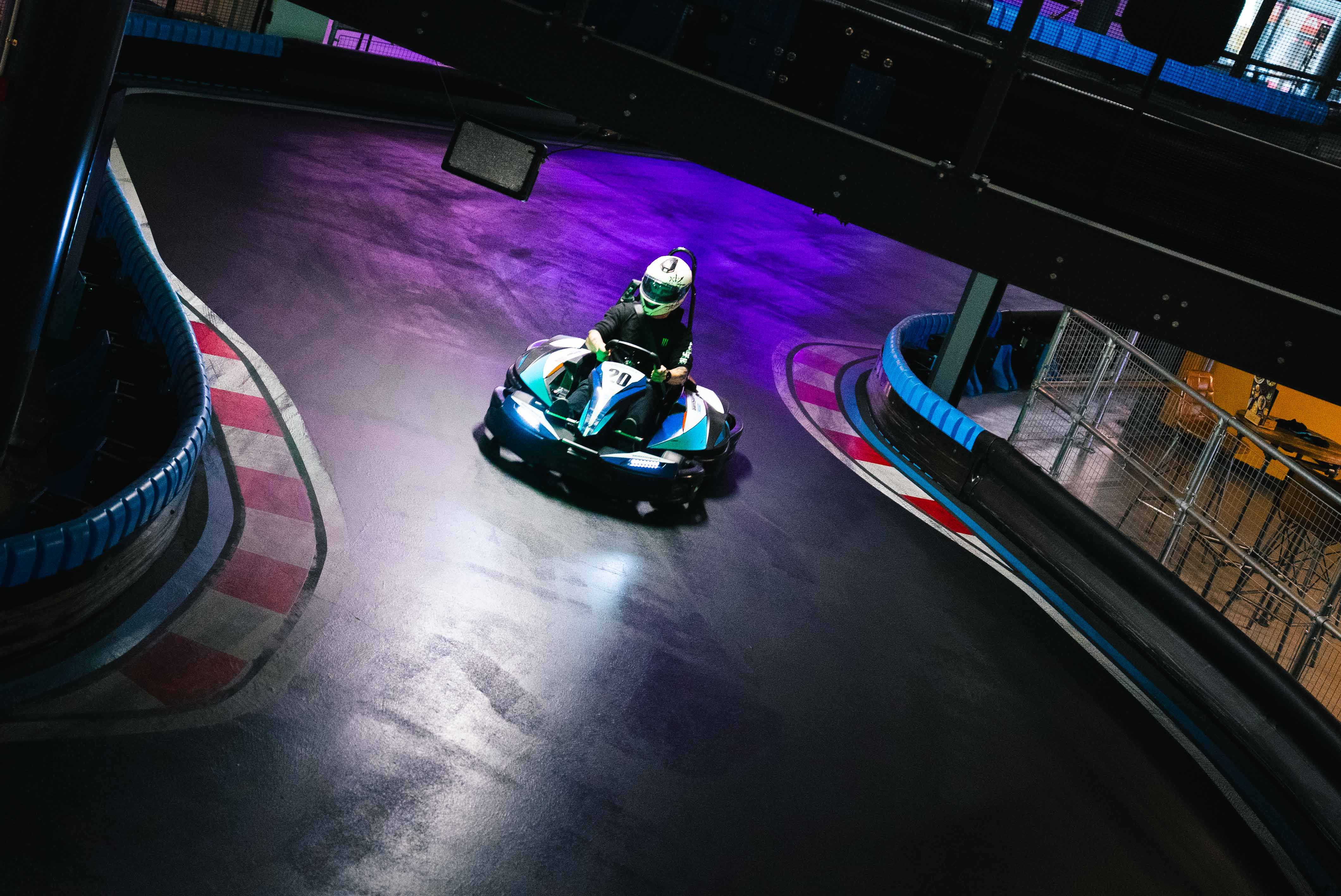 Bij TeamSport E-Karting vlieg je lekker door de bochten. © TeamSport E-Karting