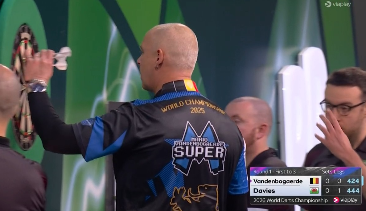 Voor de Belgische darter Mario Vandenbogaerde (52) was het WK 2026 al na de eerste partij over. Zaterdag verloor de speler uit Zonnebeke van David Davies met 3-0. Alhoewel, WK 2026? Als we afgaan op het shirt van 'Super Mario', deed hij mee aan een ander wereldkampioenschap.
