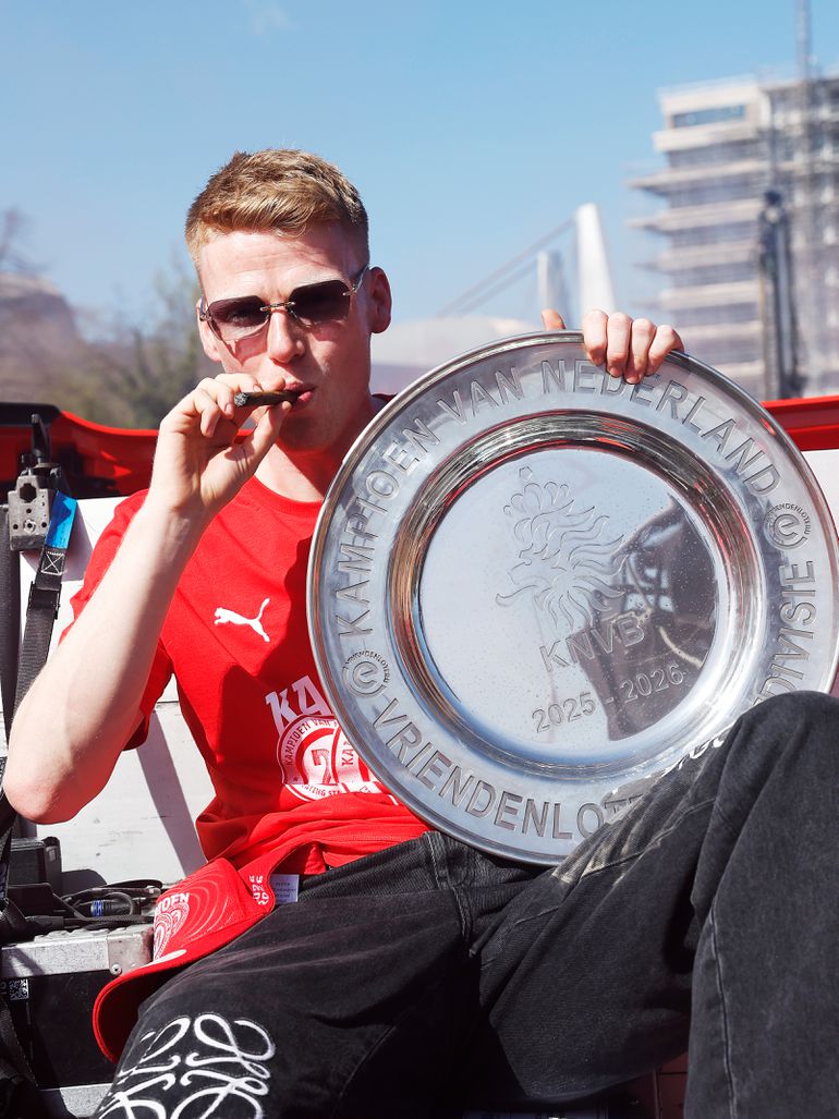 Er hangt een kleine schaduw over het kampioenschap omdat aanvoerder Jerdy Schouten in de laatste wedstrijd tegen Utrecht een kruisbandblessure opliep. Hij is op krukken bij zijn team maar zal voorlopig niet in actie komen. Ook het WK is over voor hem. Dat is heel zuur voor de aanvoerder van PSV. De overhandiging van de schaal was daardoor ook een emotioneel moment.