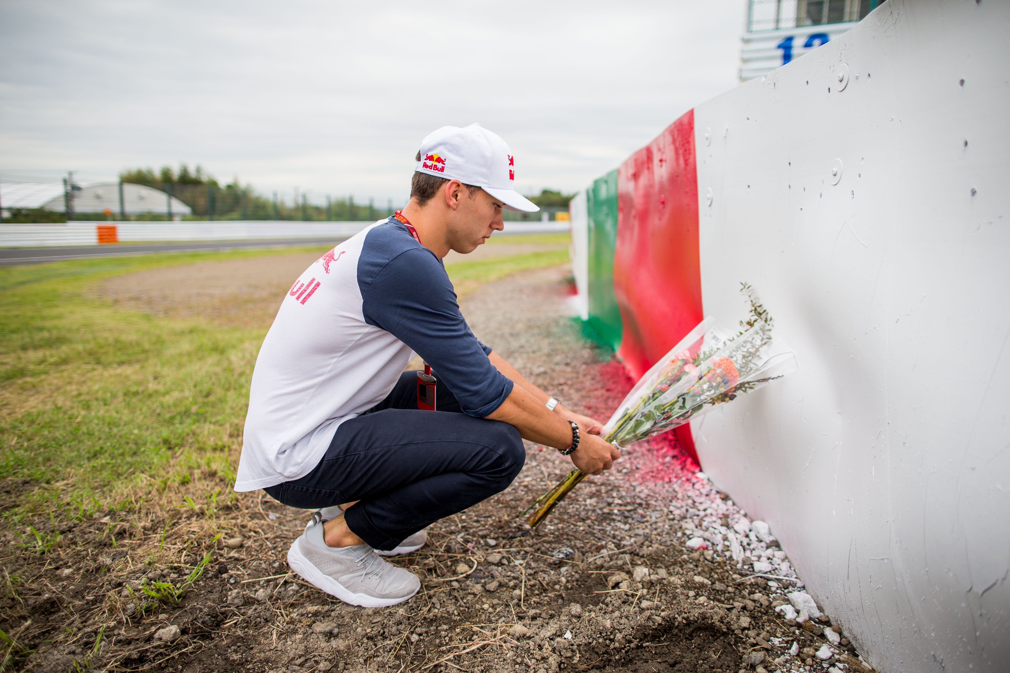 Pierre Gasly (vriend van Leclerc en ook Hubert) legt elk jaar bloemen op de plek waar Jules Bianchi crashte © Getty Images