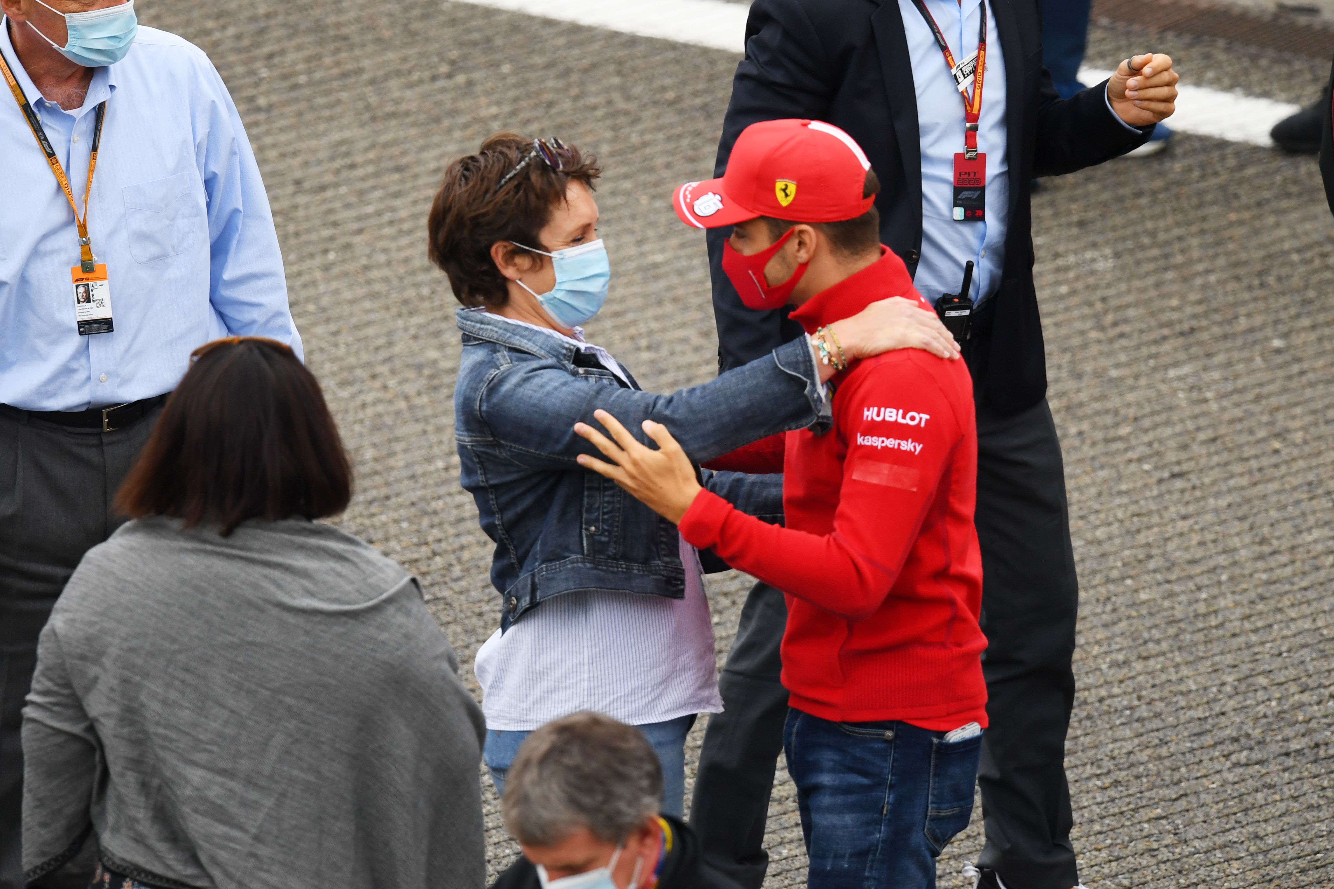 Charles Leclerc met de moeder van Anthoine Hubert, een dag na het dodelijke incident © Getty Images