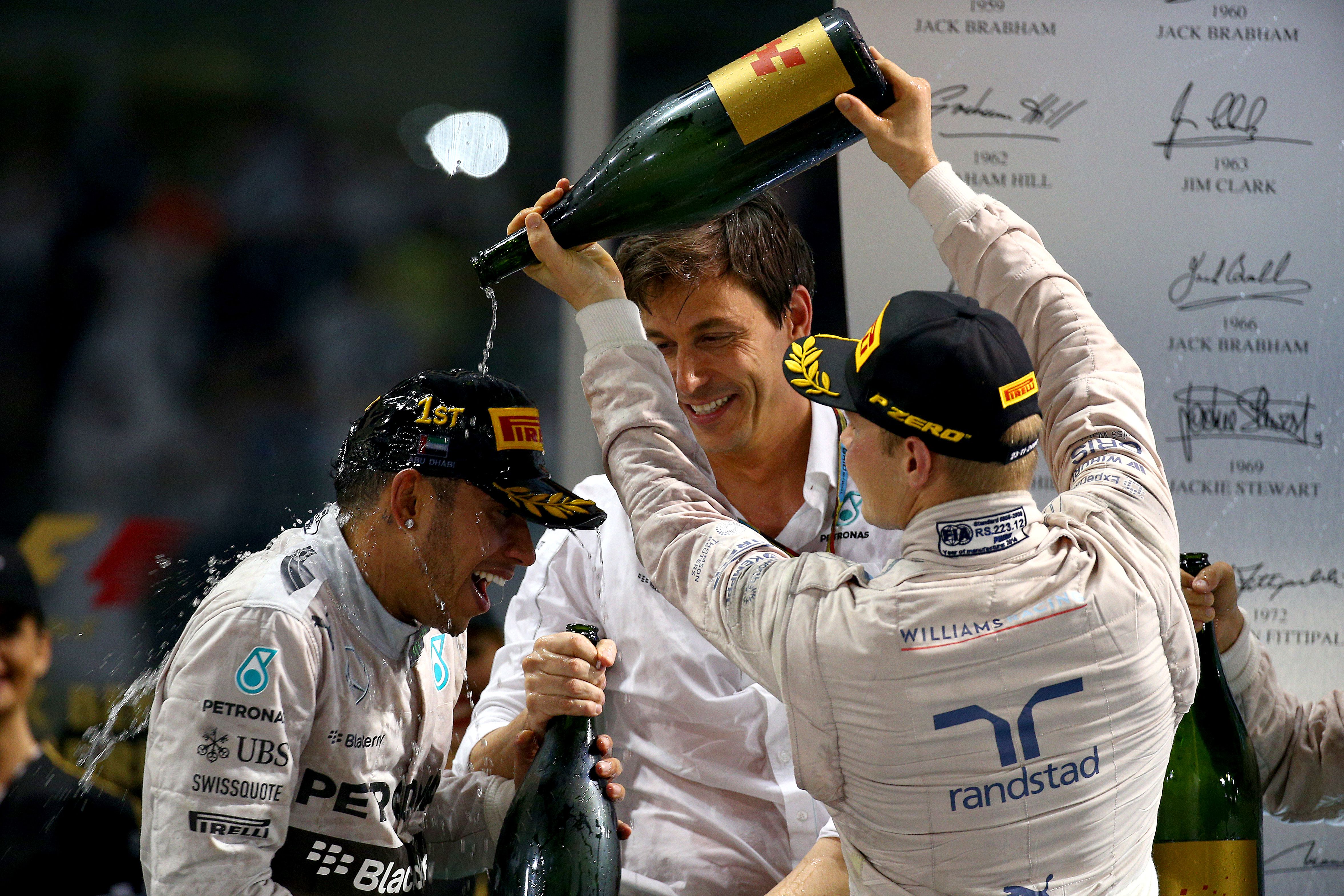 Lewis Hamilton, Toto Wolff en Valtteri Bottas bij Mercedes ©Getty