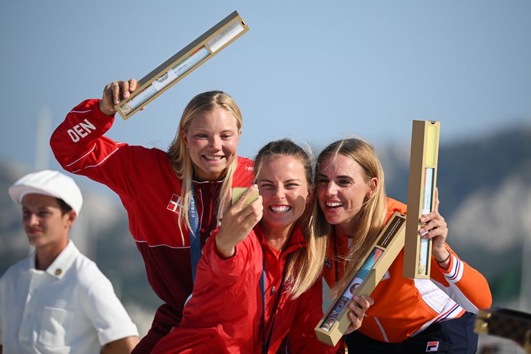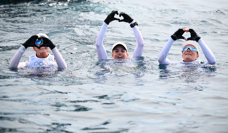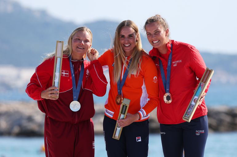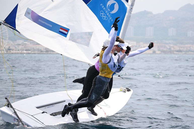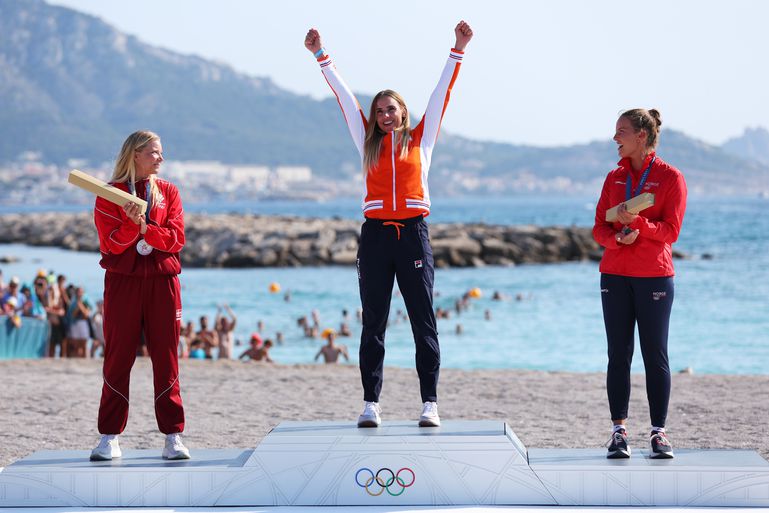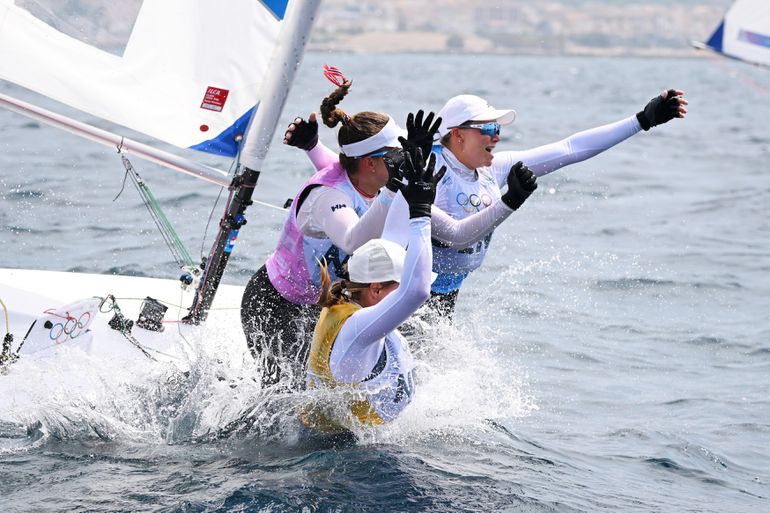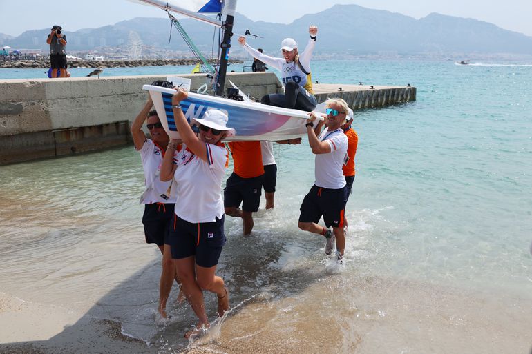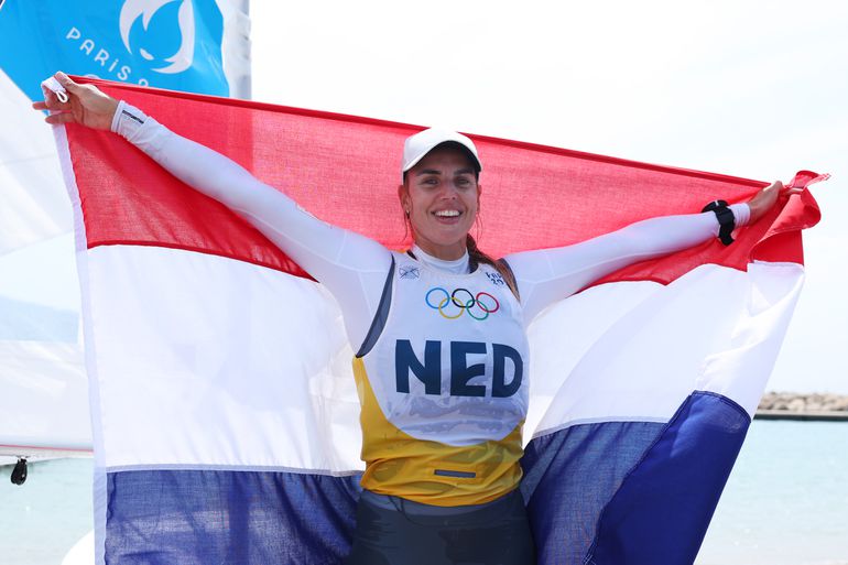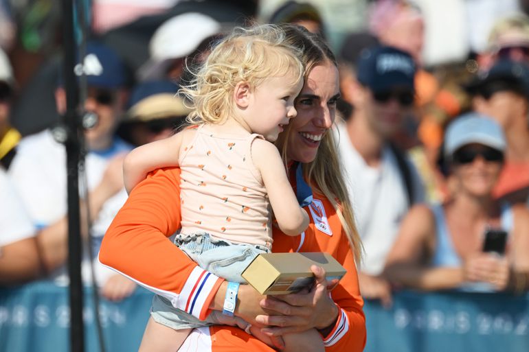 Dochtertje Jessie Mae viert het goud van mama Marit Bouwmeester op de Olympische Spelen