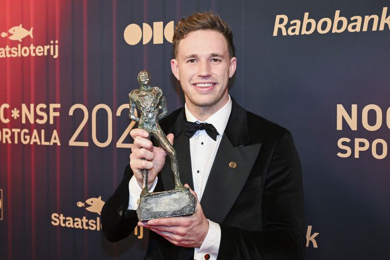 - 8/8Harrie Lavreysen heeft zijn prijs als Sportman van het jaar te pakken © NL Beeld / Patrick van Emst