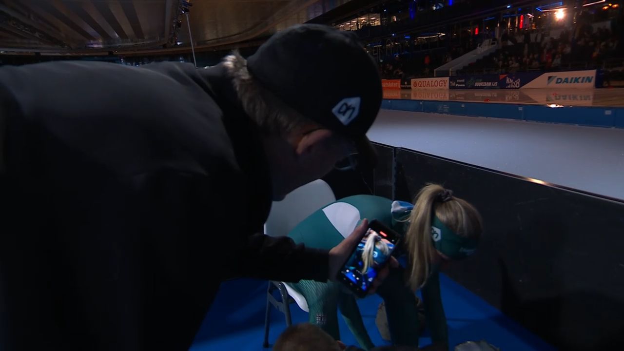De markante schaatscoach pakte zijn telefoon en filmde zijn rijdsters na afloop van de race. Hij leek daarbij ze zelfs nog wat te vragen als een ervaren interviewer. De actie van Anema zorgde voor hilariteit bij presentator Jeroen Stomphorst en analisten Mark Tuitert en Ireen Wüst die namens de NOS aanwezig waren bij de NK afstanden om hun licht op alles te laten schijnen.