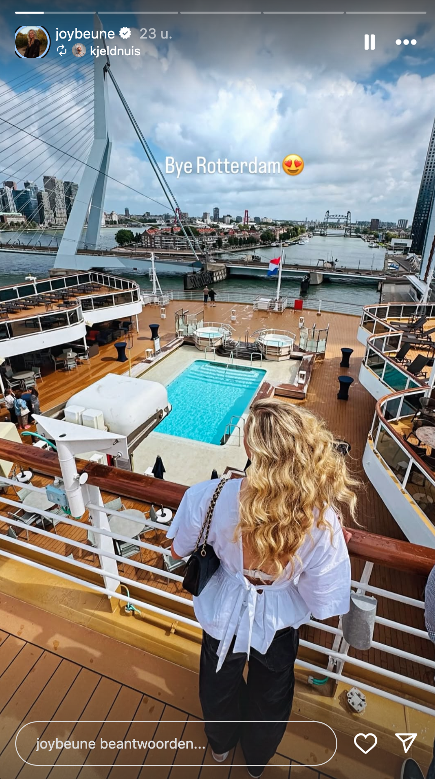Beune is samen met haar partner Nuis volop in training voor het nieuwe seizoen. De schaatsster hoopt komende winter te schitteren op de Olympische Winterspelen in Milaan. In 2025 kroonde ze zich tot drievoudig wereldkampioen, waarmee ze geldt als een van de topfavorieten voor olympisch eremetaal. Toch zoekt Beune ook de nodige tijd om te ontspannen. Zo zit ze momenteel op een cruiseschip samen met Nuis en zijn zoontje.