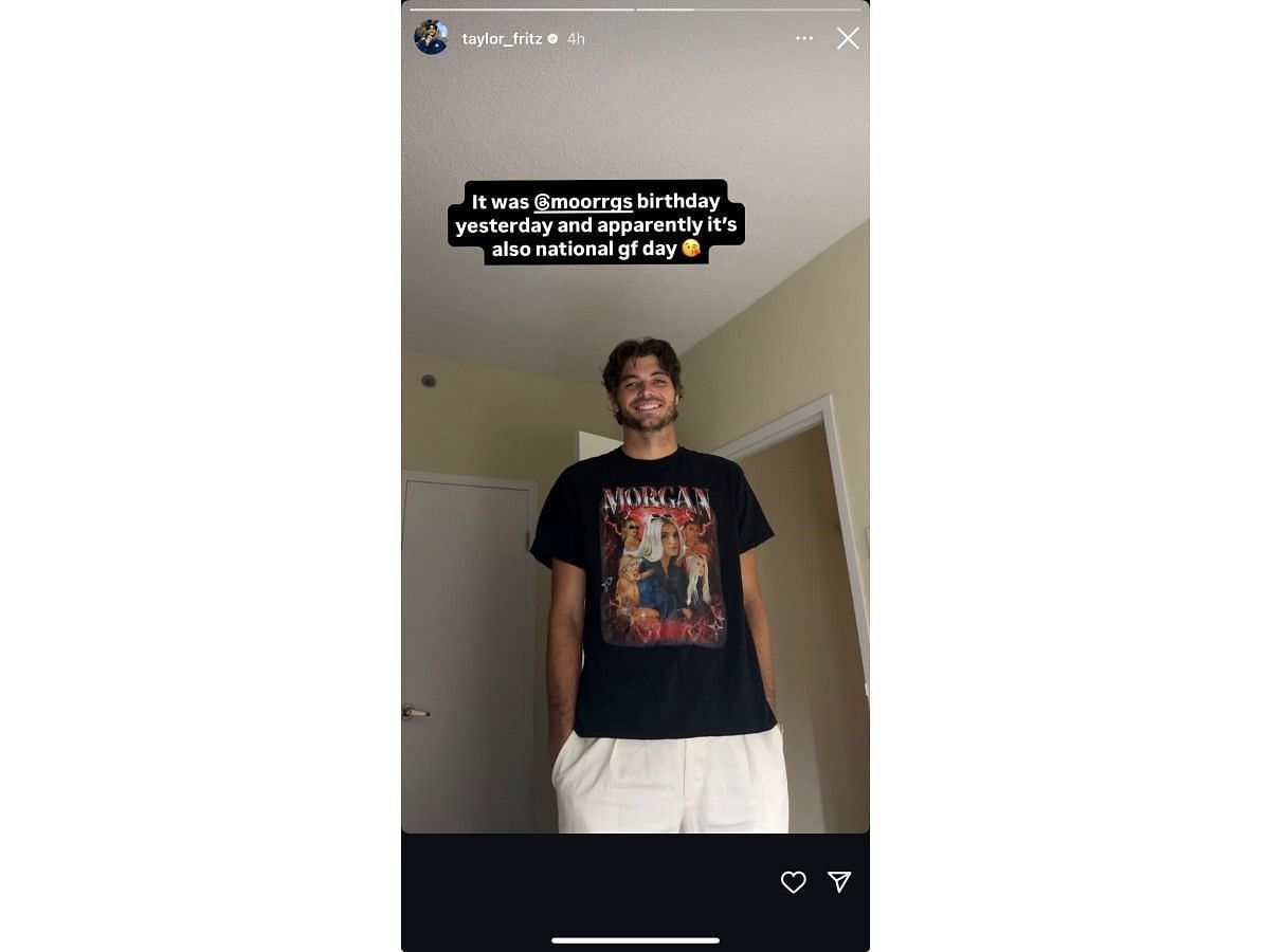 Op 31 juli werd model en influencer Riddle 28 jaar. Fritz pakte flink uit om die heugelijke dag te vieren. De nummer 4 van de ATP-ranking trok een shirt aan met daarop een foto van Riddle. Op Instagram schreef hij bij een foto van zichzelf met dat shirt aan: "Gisteren was Morgan jarig en kennelijk was het ook nog nationale vriendinnendag", gevolgd door een kussende emoticon.