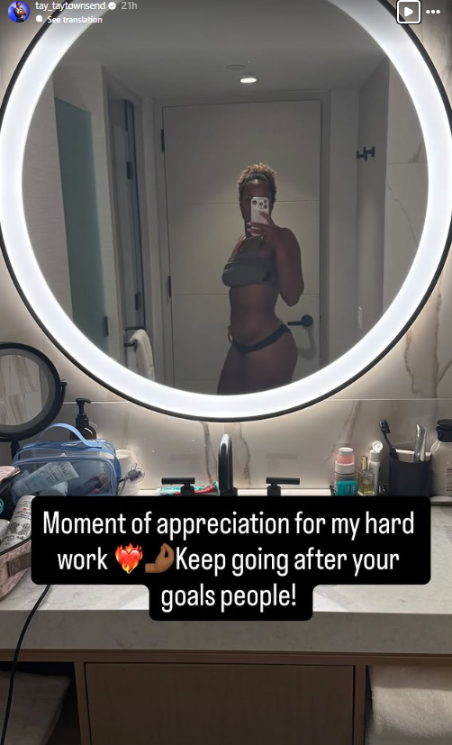 Ze lijkt helemaal klaar om de komende weken te gaan vlammen, want op Instagram deelde ze een bijzondere foto. "Een moment van waardering voor mijn harde werk. Mensen, blijf je doelen najagen!", schrijft ze bij de afbeelding. Townsend staat daarop voor de spiegel in de badkamer en ze is duidelijk trots op hoe haar lichaam er momenteel uitziet. Dat is niet voor niets, want ze heeft de afgelopen jaren een transformatie ondergaan.