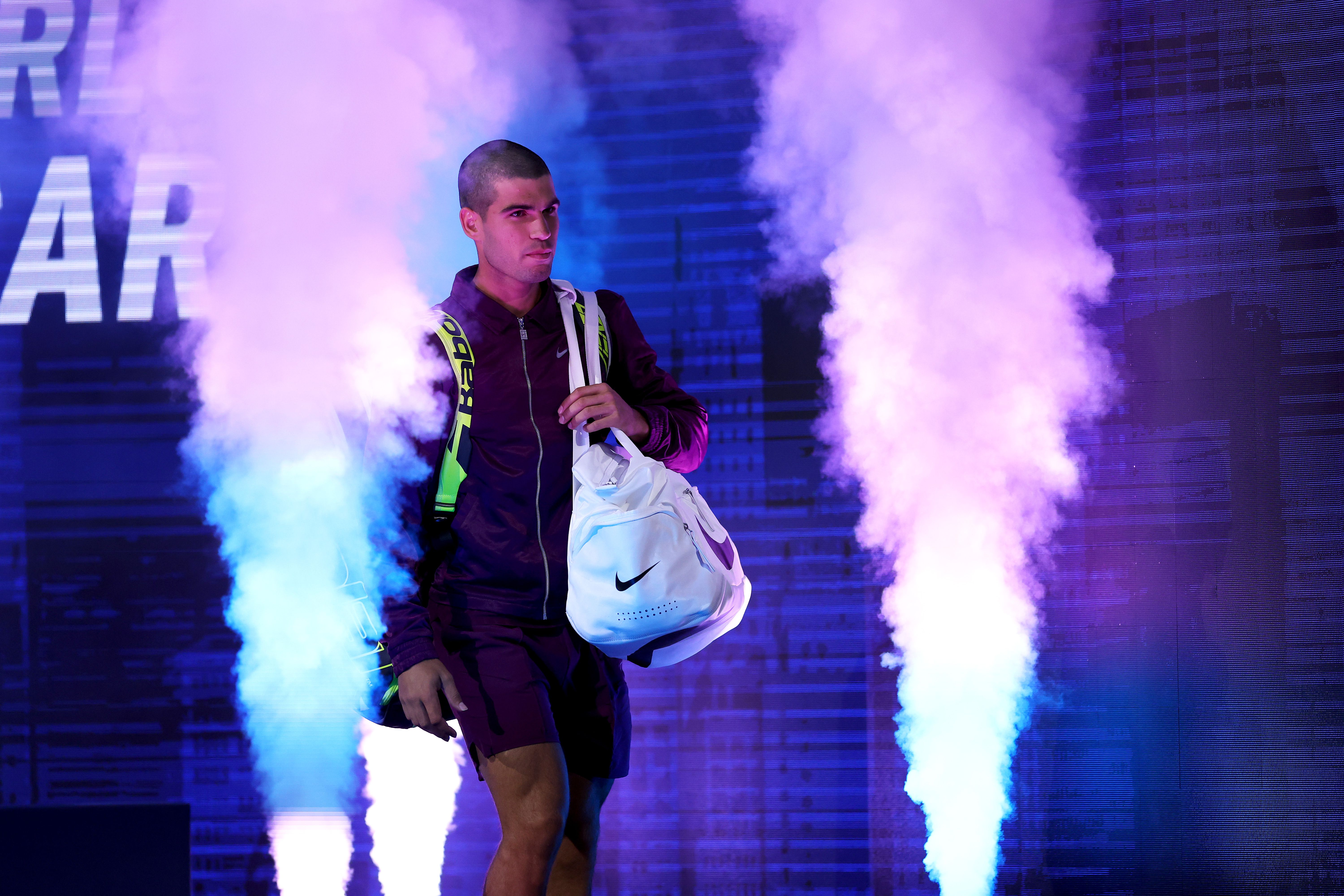 Carlos Alcaraz komt de baan op voor zijn eerste partij op US Open © Getty Images