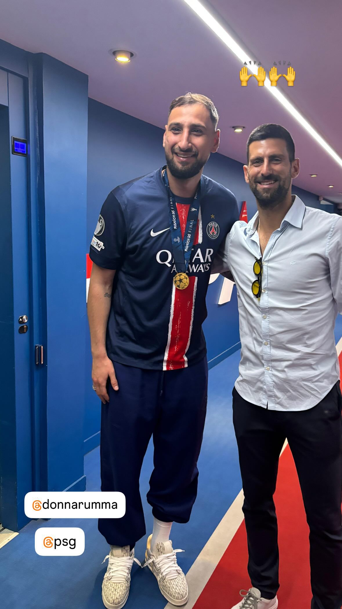 Novak Djokovic samen met PSG-doelman Gianluigi Donnarumma. ©Instagram