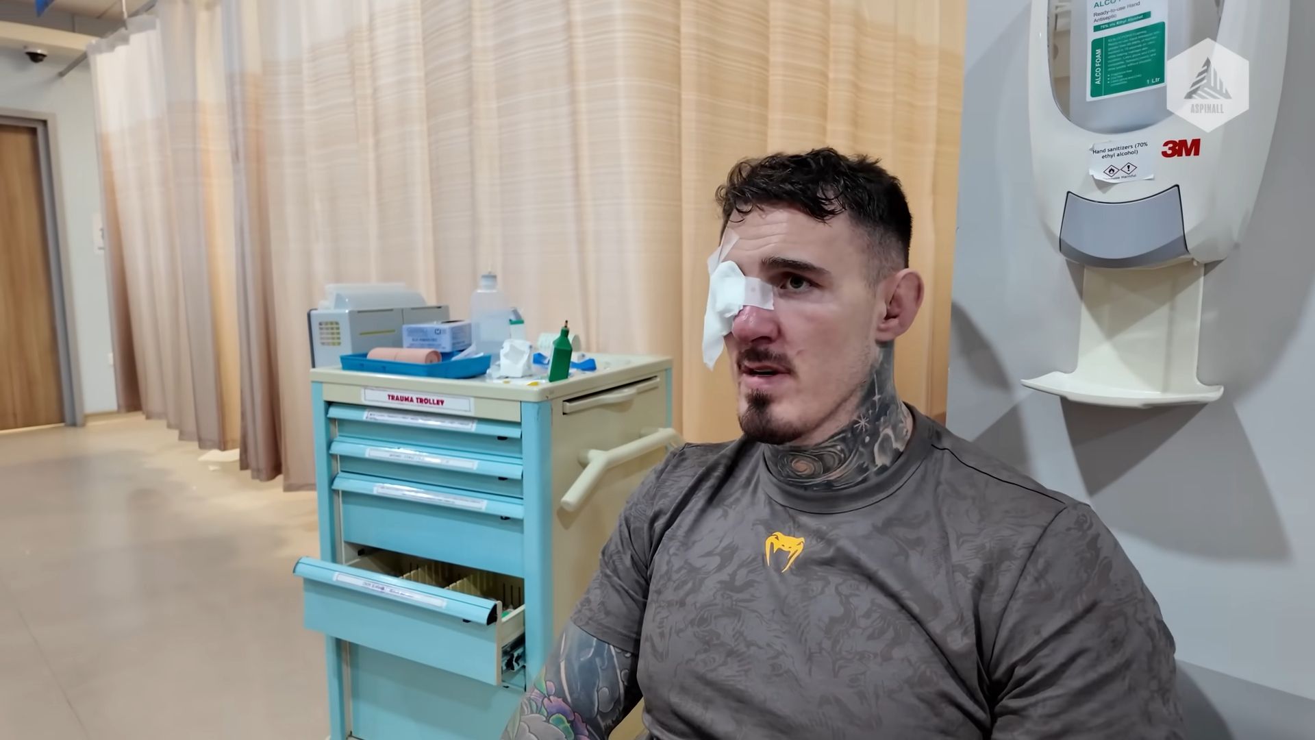 Tom Aspinall heeft een flink verband op zijn oog gekregen. ©YouTube
