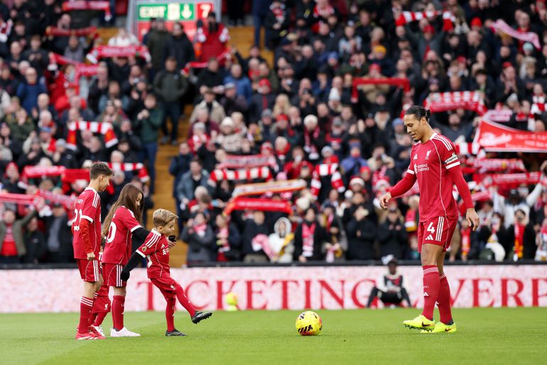 Foto's | De kinderen van de overleden Diogo Jota als mascotte bij Liverpool