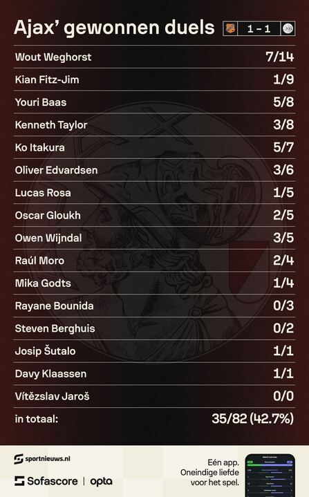Ajax leverde zaterdagmiddag een wanvertoning tegen FC Volendam (1-1). Trainer John Heitinga was zichtbaar gefrustreerd over het spel van zijn eigen ploeg, maar hij maakt zich vooral zorgen om de verloren duels. "Dan is het platgezegd: kut", stelt Heitinga op de persconferentie.
