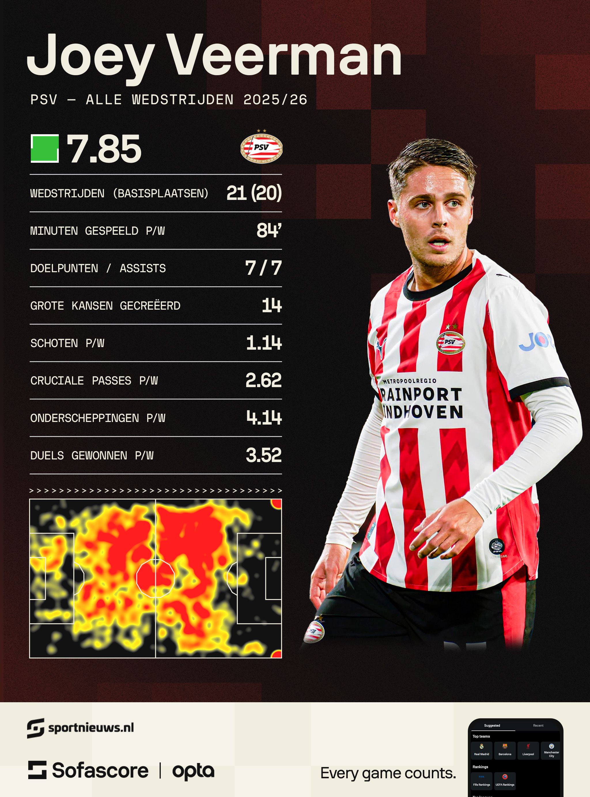 Ondertussen maakt de Volendammer zich totaal niet druk om het uitblijven van een Oranje-oproep. Hij gaat lekker op stap met zijn vrienden en geniet van zijn kinderen. Maar als Veerman zijn huidige vorm vasthoudt en ook in toppers tegen Feyenoord, Ajax, Newcastle United en Bayern München blijft imponeren, dan kan Koeman simpelweg niet om hem heen. Hij behoort zonder twijfel tot de beste 26 spelers van Nederland.