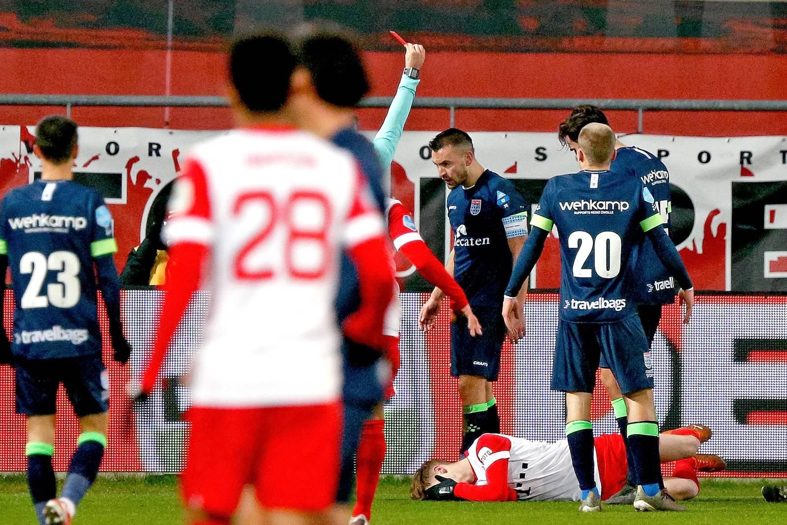 In z’n 400e wedstrijd als betaald voetballer, werd PEC Zwolle-routinier Bram van Polen de schlemiel. Hij kreeg diep in de blessuretijd een rode kaart nadat hij Remco Balk duwde en daarna gaf zijn ploeg de overwinning weg: 3-3