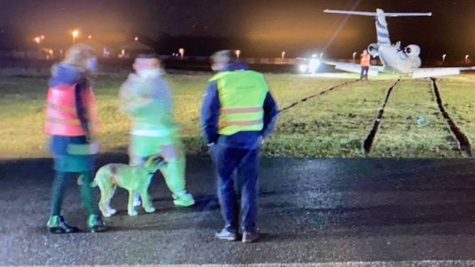Met de schrik vrijgekomen. Voetballer Dries Mertens (33) zal zijn landing op de luchthaven van Deurne zaterdag niet snel vergeten. De privéjet die hij had gehuurd, schoof na de bizarre landing te ver door en ging het grasveld in. Gelukkig liep het allemaal goed af.