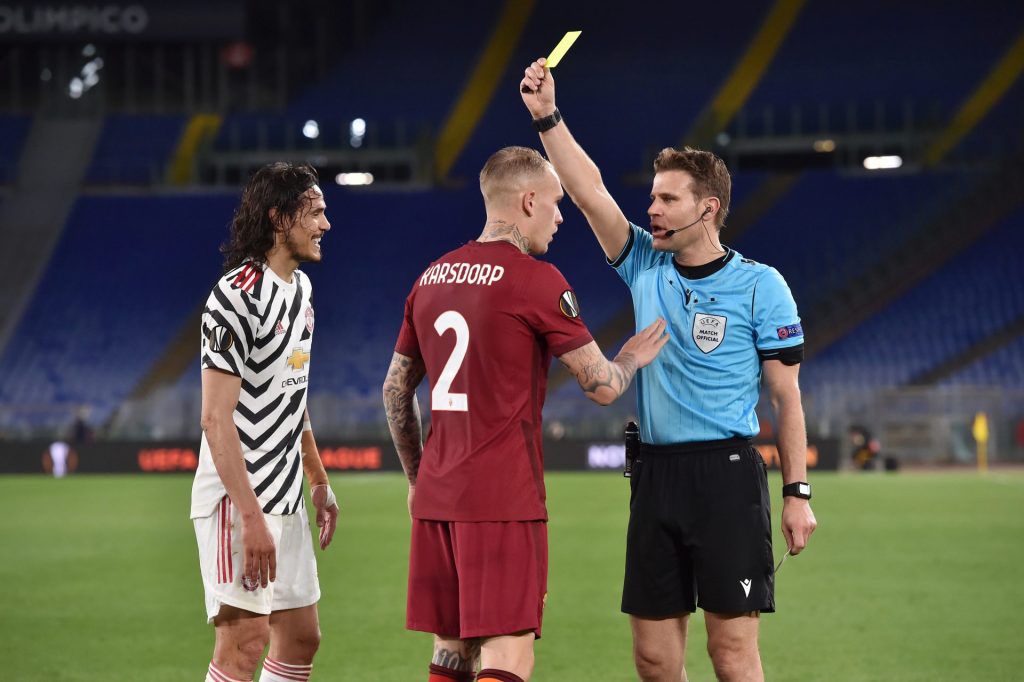Bij Roma maakte Rick Karsdorp de wedstrijd vol. Hij kreeg in de 72ste minuut geel nadat hij Mason Greenwood duwde en Cavani daar wat van zei. Beide kemphanen gingen dan ook op de bon.