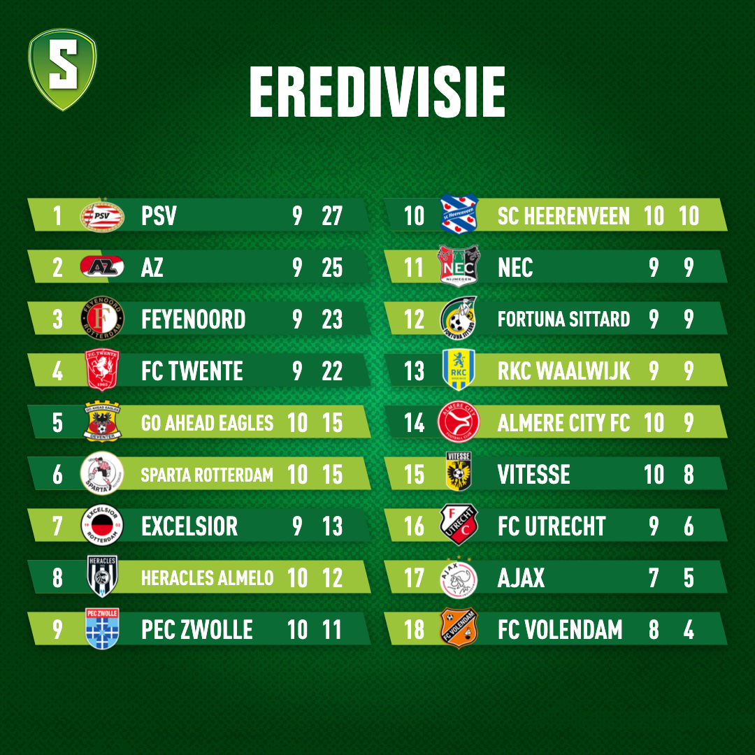 In de Eredivisie hebben Heerenveen en Sparta eindelijk weer eens gewonnen. De Friezen pakten voor het laatst 3 punten in augustus, de Spangenaren vorige maand. Heerenveen won zaterdag met 3-0 van Heracles Almelo, terwijl Sparta het RKC van oud-trainer Henk Fraser versloeg: 2-0. Almere City FC en Go Ahead Eagles scoorden niet.