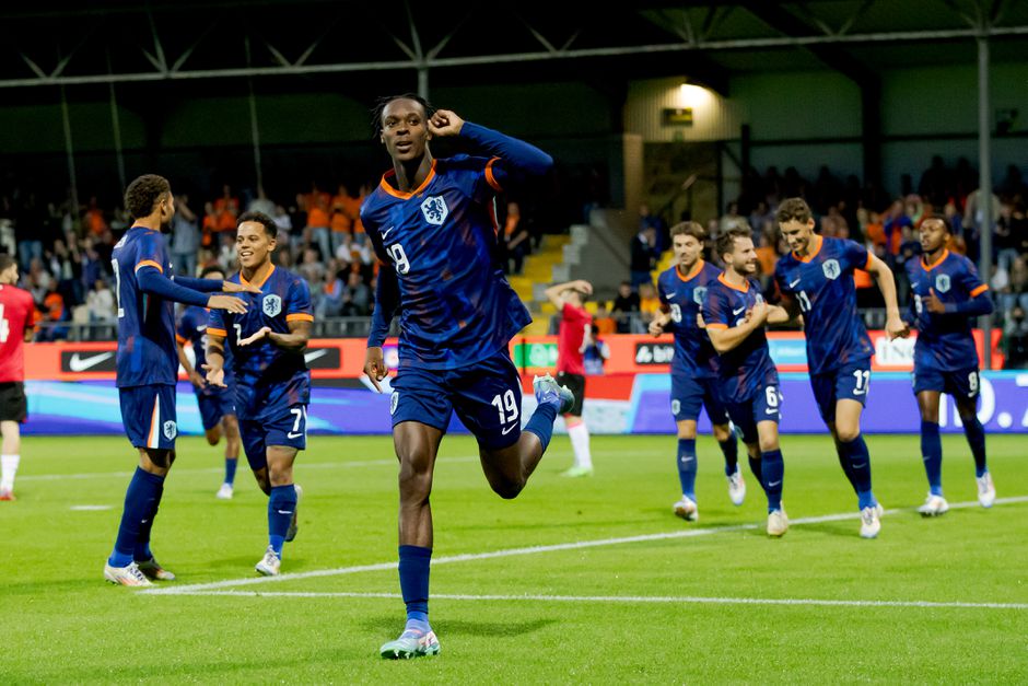 Nederland kwam zelfs al vroeg op voorsprong. Emanuel Emegha schoof in de vierde minuut het eerste Oranje-doelpunt binnen: 1-0. De 21-jarige speler van RC Strasbourg maakte zijn eerste interlandgoal. Even later zorgde Emegha opnieuw voor feest: na een perfect pass van Million Manhoef kopte de voormalig Spartaan de 2-0 raak.