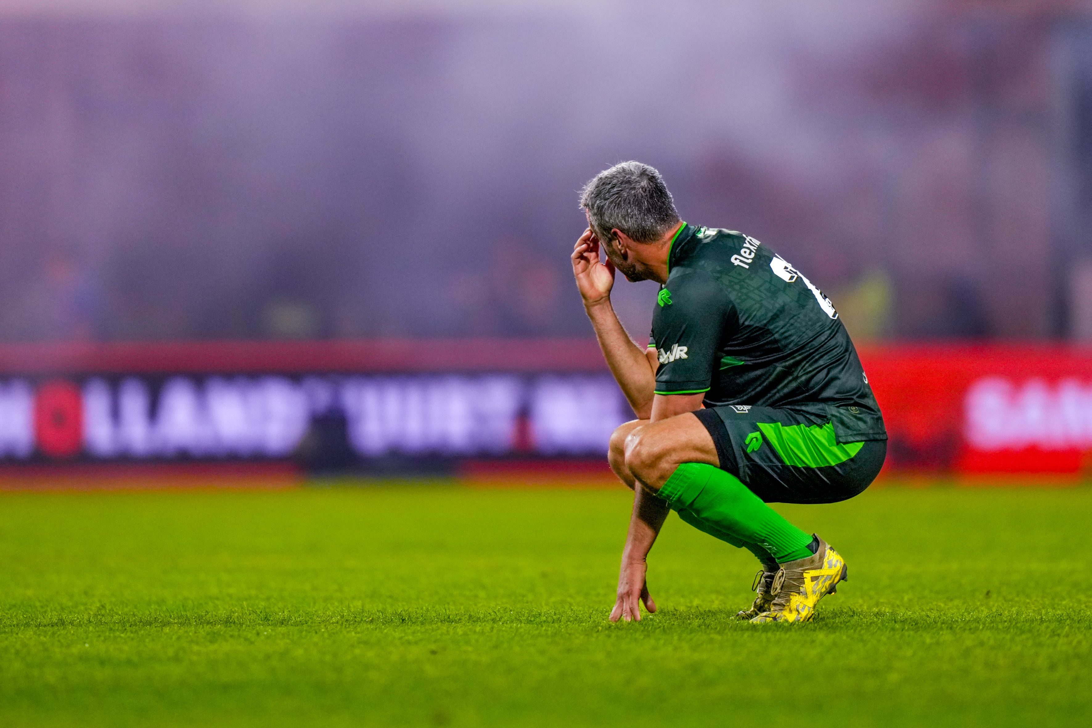 Ralf Seuntjens met diepe teleurstelling na uitschakeling in play-offs met De Graafschap. ©Pro Shots.