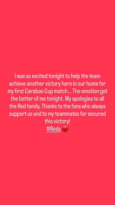 De excuses van Hugo Ekitiké aan de Liverpool-familie. ©Instagram