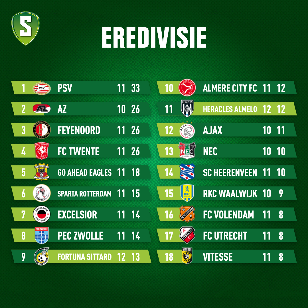 Heracles kreeg vanavond het 29e, 30e, 31e én 32e tegendoelpunt om de oren in de Eredivisie. Dat is veruit het meeste van alle clubs. Heerenveen volgt met 25 tegengoals. Vorig week verloren de Heraclieden nog met 6-0 van PSV.
