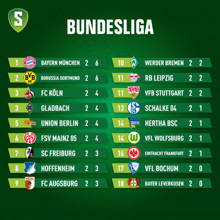 Bayern München en Borussia Dortmund zijn na 2e speelronden de enige clubs die nog geen puntenverlies in de Bundesliga hebben opgelopen.