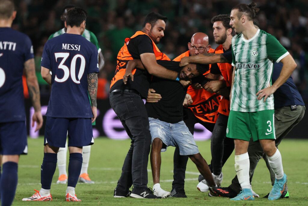 Lionel Messi stond woensdagavond in het duel tussen PSG en Maccabi Haifa (1-3) behoorlijk in de belangstelling. Niet alleen scoorde de aanvaller éénmaal, maar ook de mascottes werden helemaal gek voorafgaand aan de wedstrijd. Maar ook tijdens de wedstrijd was er een incident, want een pitch invader was de stewards te snel af en wist nog net Messi te omhelzen, voordat hij toch werd gegrepen door de stewards. Check hieronder de foto's!