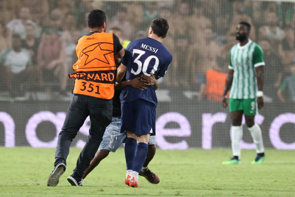 📸 | Wat je niet zag op tv: pitch invader is stewards te snel af en omhelst Messi