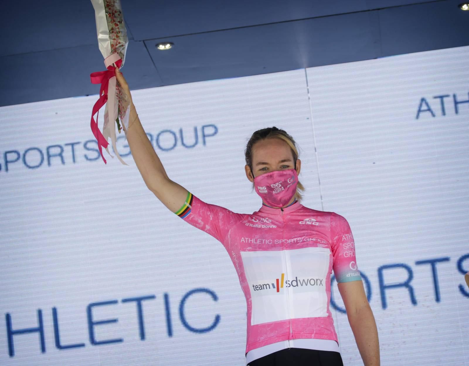 Van der Breggen is de regerend wereldkampioene op de weg en in de tijdrit. Ze is ook 3-voudig winnaar van de Ronde van Italië. Met haar zege in de 2e etappe nam ze al een grote voorsprong in het algemeen klassement van deze Giro. Met haar zege in de tijdrit bouwde ze haar marge alleen maar verder uit.