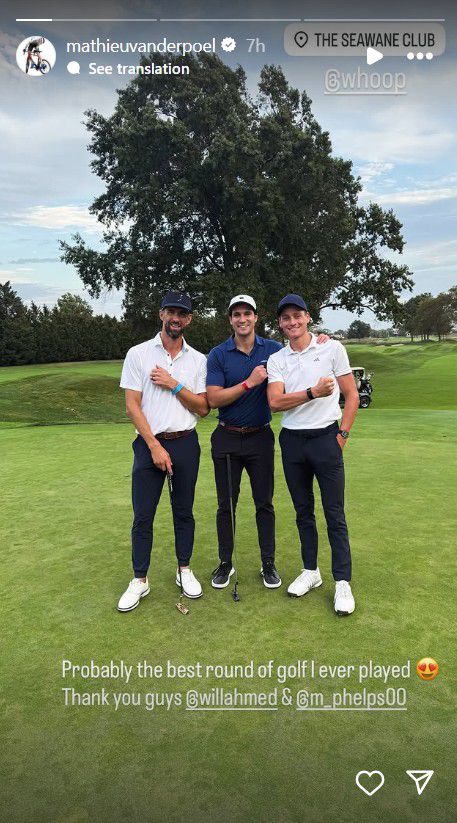 Op zijn Instagram postte Van der Poel een story waarop hij met twee anderen een potje golf had gespeeld. Een van die twee was Will Ahmed, de oprichter van de app Whoop. Die app gebruikt Van der Poel standaard om zijn slaap, trainingen en andere prestaties bij te houden. De andere man die het drietal compleet maakte, was niemand minder dan oud-topzwemmer Michael Phelps. Het drietal speelde een aantal holes bij The Seawane Club in het Amerikaanse Hewlett.