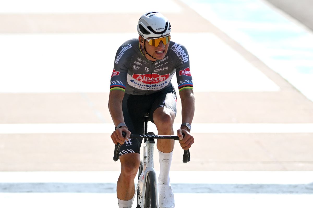 Van der Poel kwam aan kop te rijden nadat Pogacar onderuit was gegaan in een bocht op een de negende kasseistrook. "Ik kwam eigenlijk alleen te zitten door een fout van Tadej. Anders was het heel moeilijk geworden om elkaar te lossen", doelt Van der Poel op een mogelijke onderlinge sprint met de Sloveen op de iconische Vélodrome van Roubaix.
